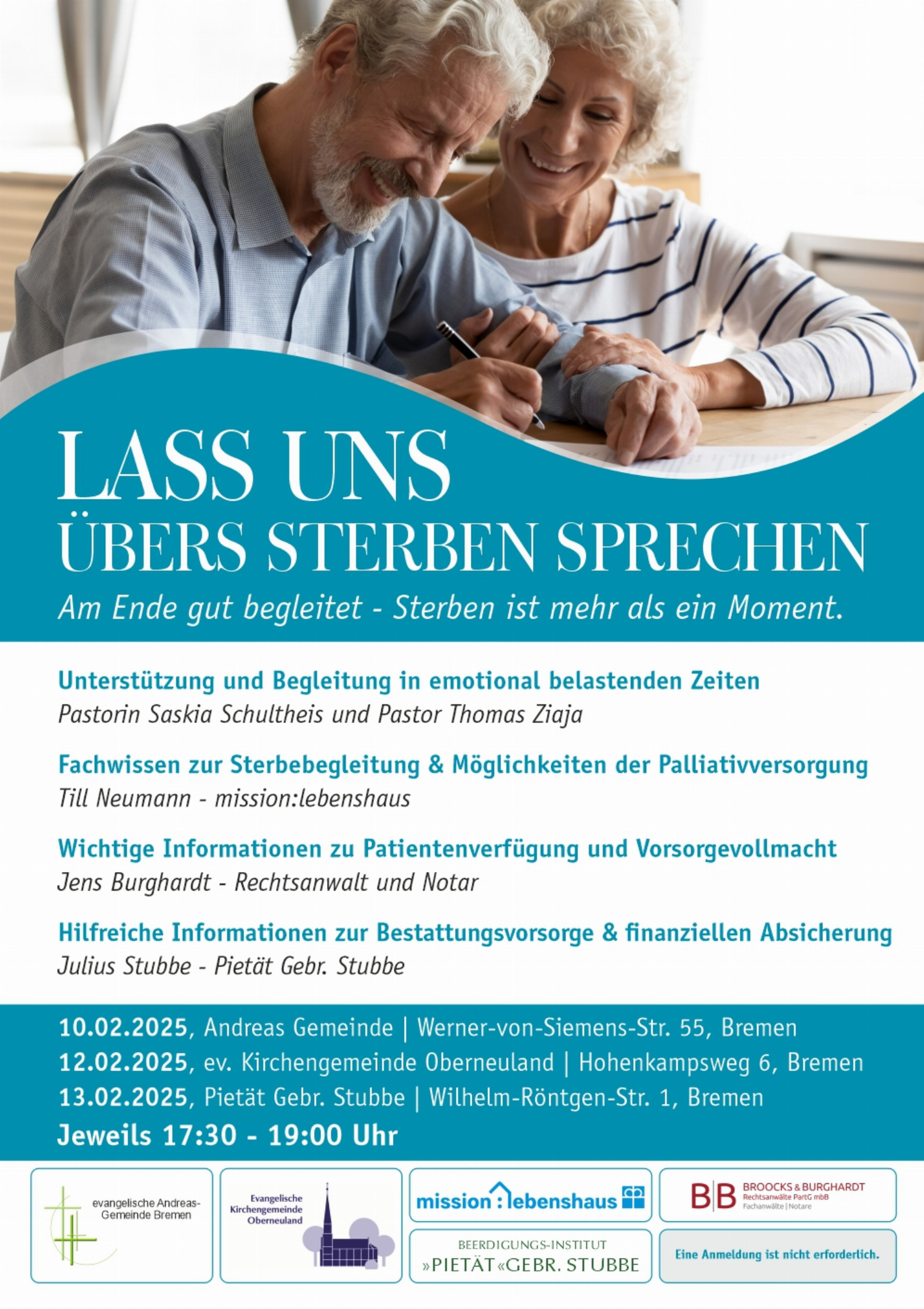 12. Februar 2025 von 17:30 bis 19:00 Uhr im Tabeasaal der Gemeinde Oberneuland (Hohenkampsweg 6)
