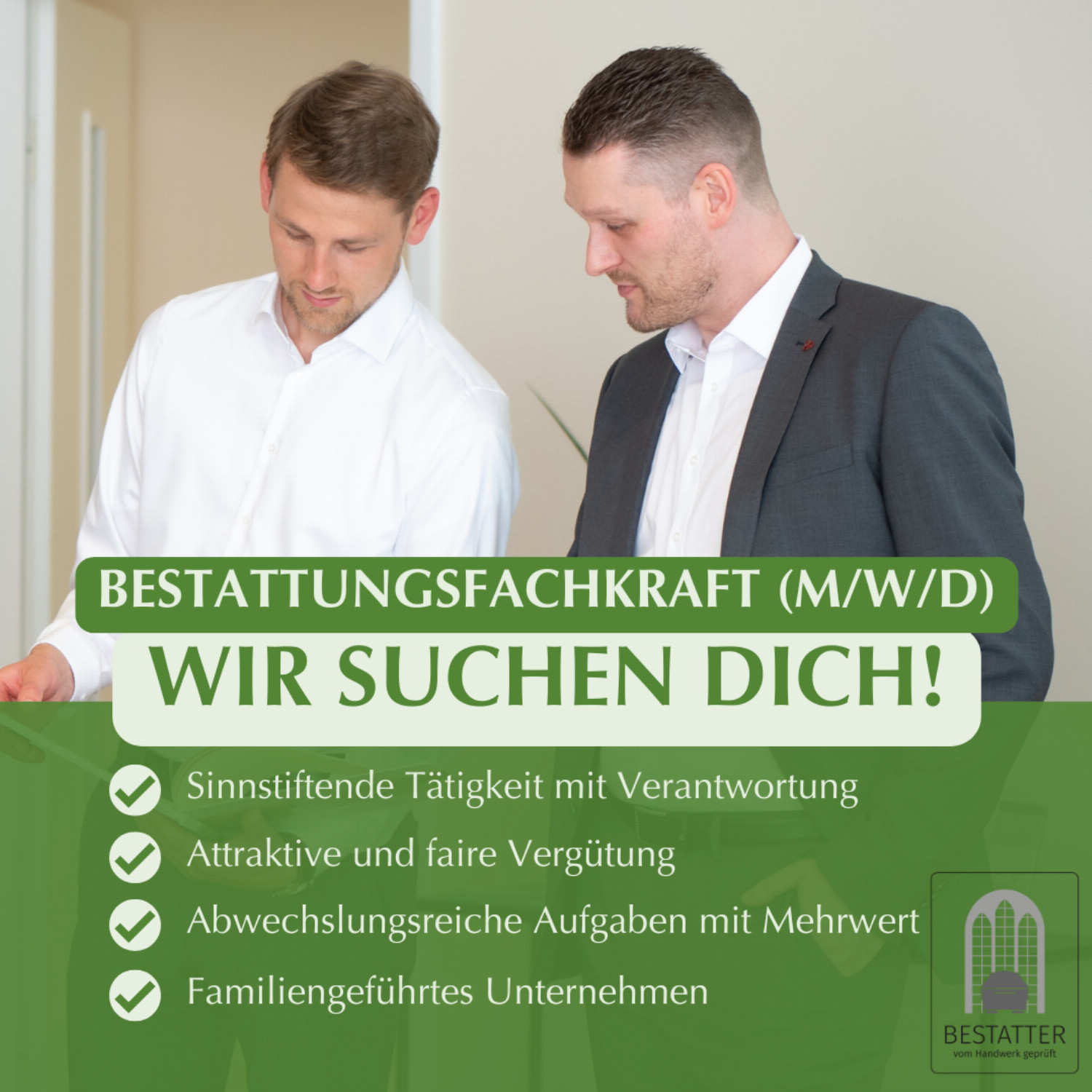 Klingt gut? Dann bewirb dich jetzt und werde Teil eines Unternehmens, das seit fünf Generationen Menschen in schweren Momenten begleitet.