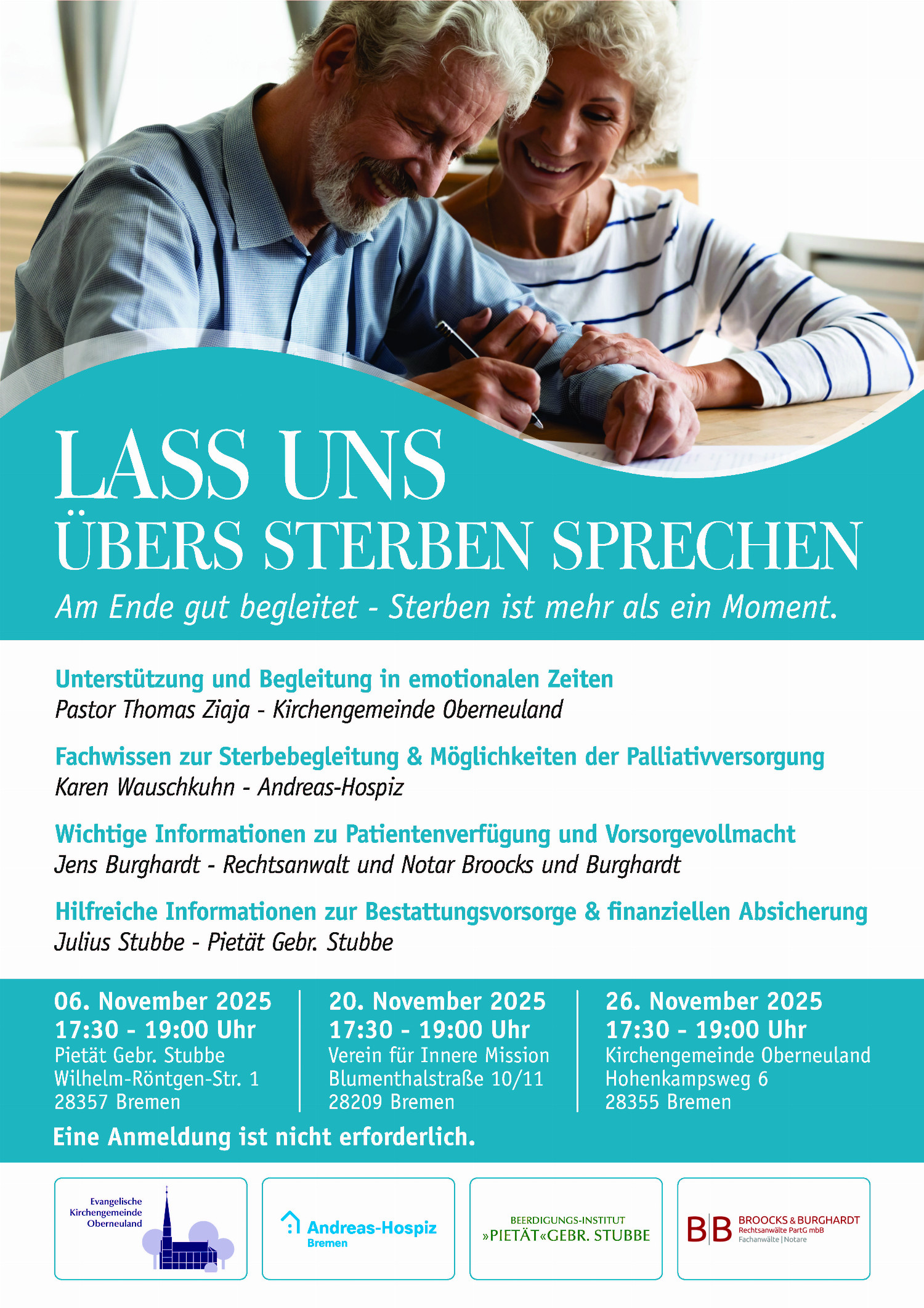 26. November 2025 von 17:30 bis 19:00 Uhr im Tabeasaal der Gemeinde Oberneuland (Hohenkampsweg 6)