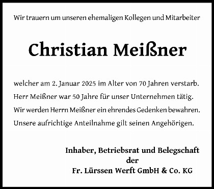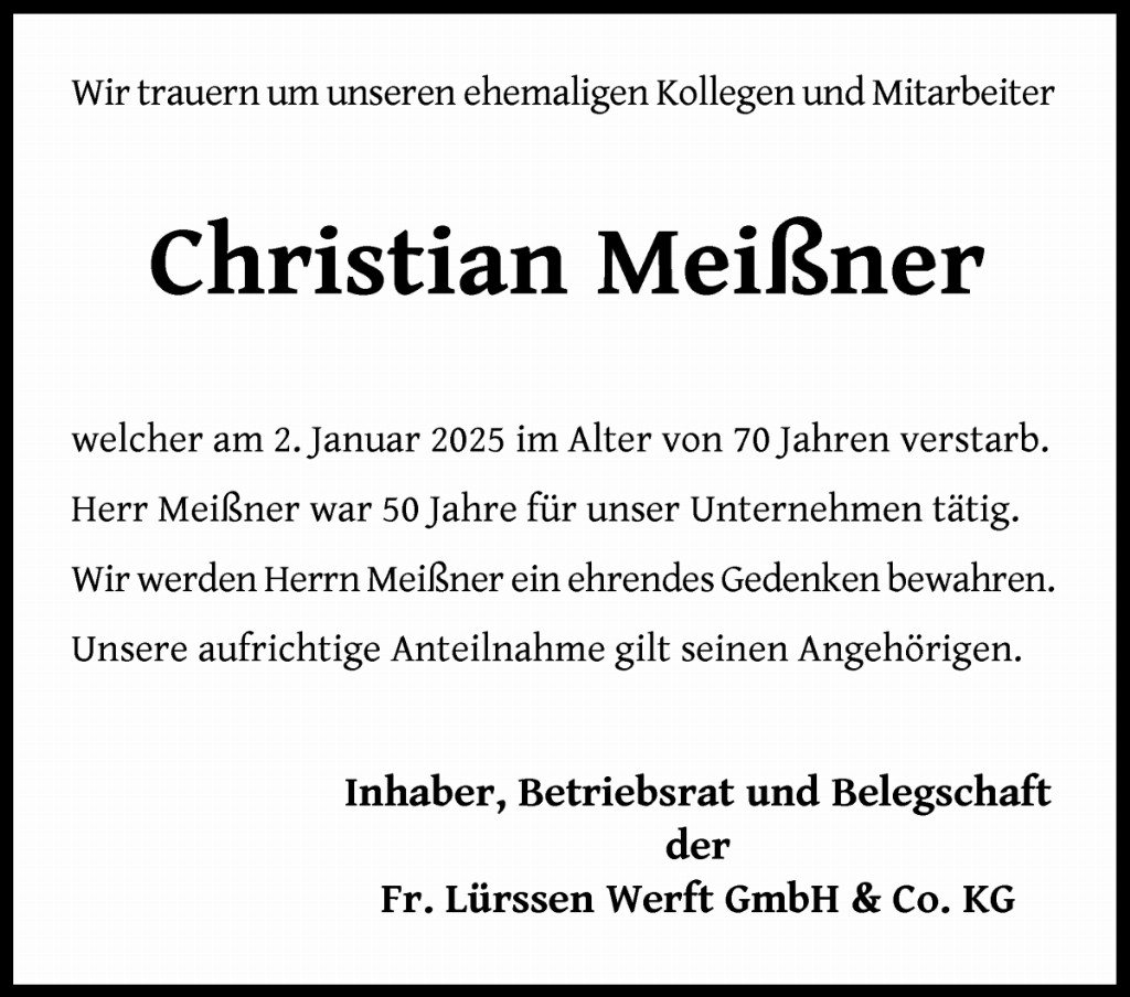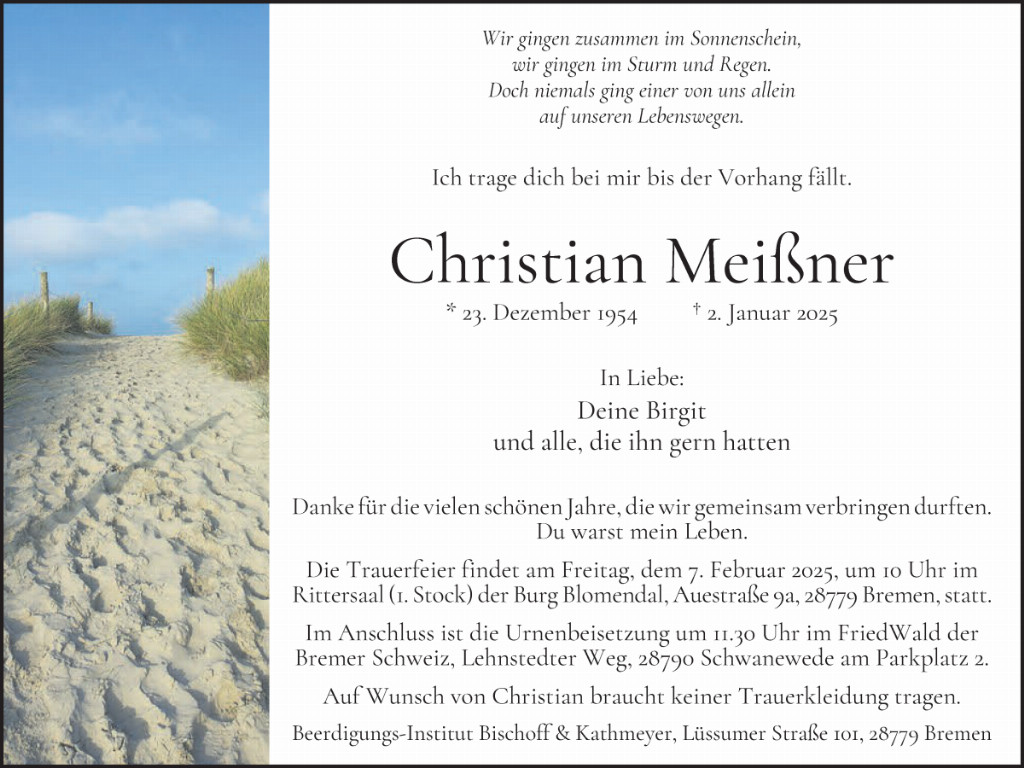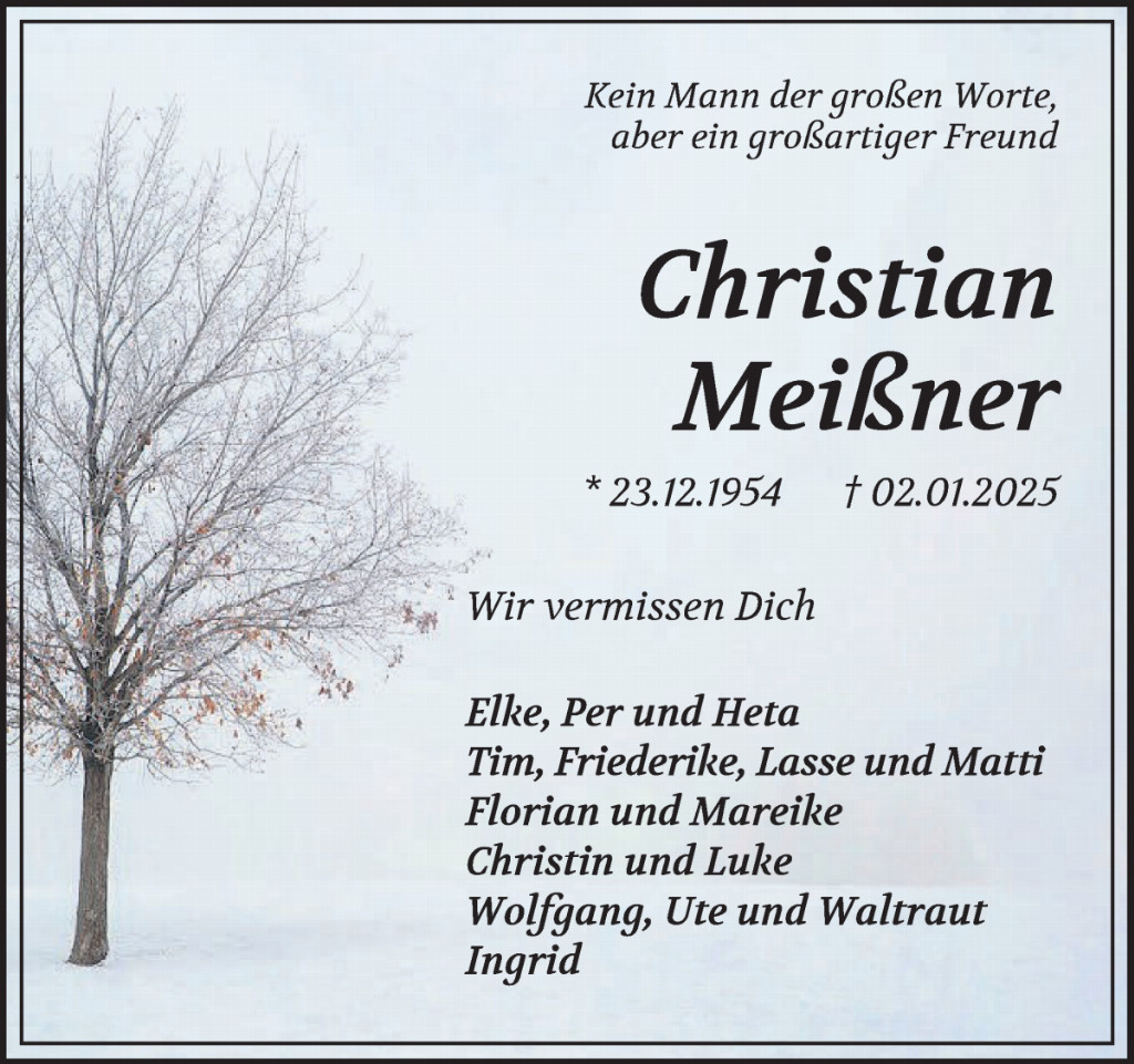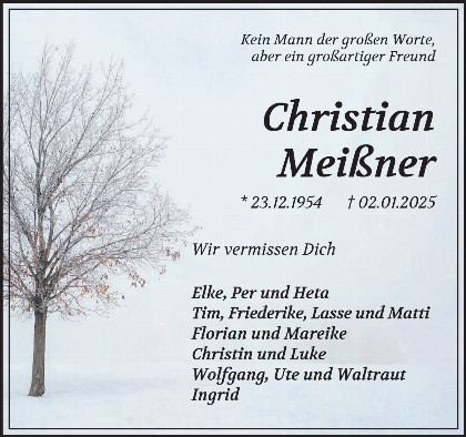 * 23.12.1954 in Bremen† 02.01.2025 in Schwanewede