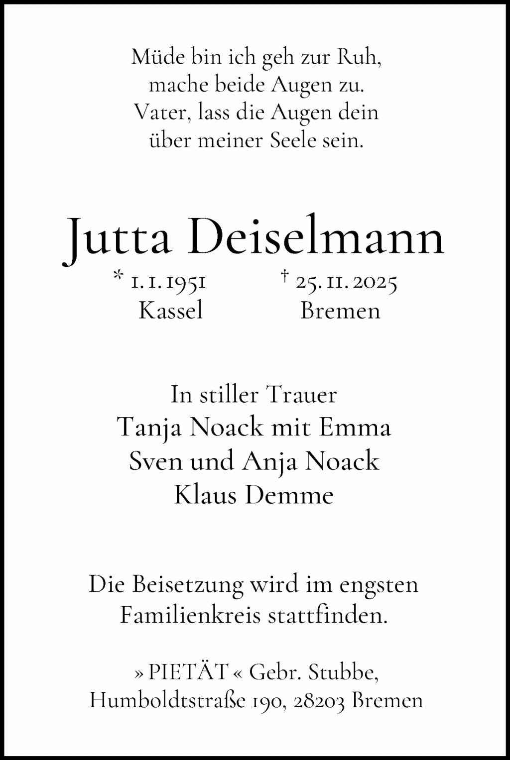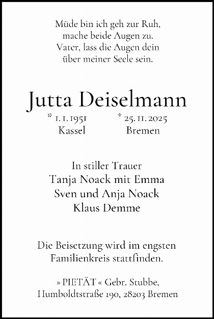 * 01.01.1951 in Kassel† 25.11.2025 in Bremen